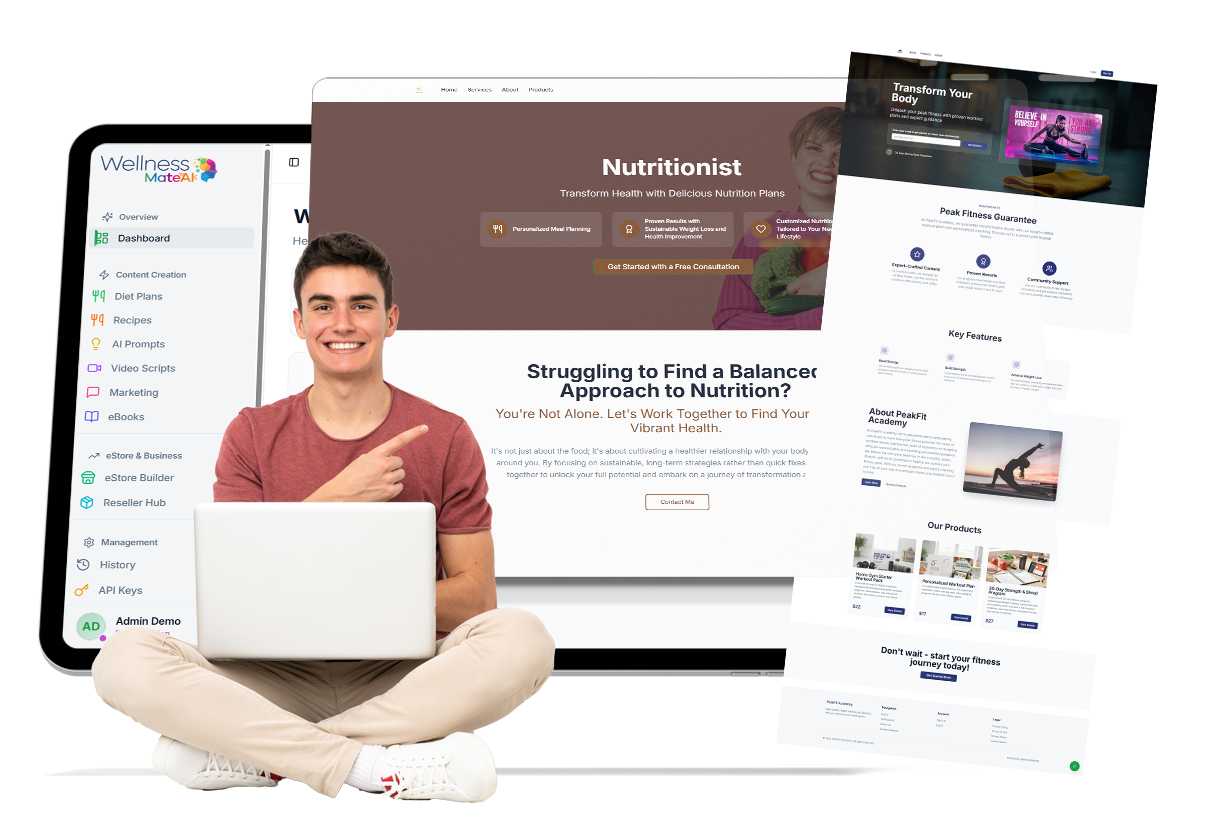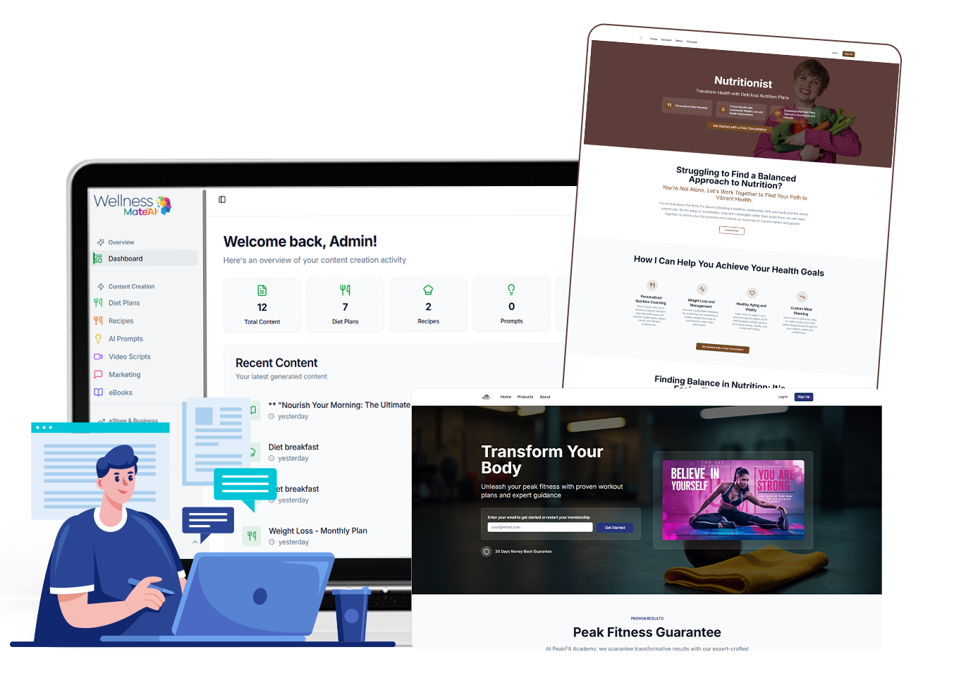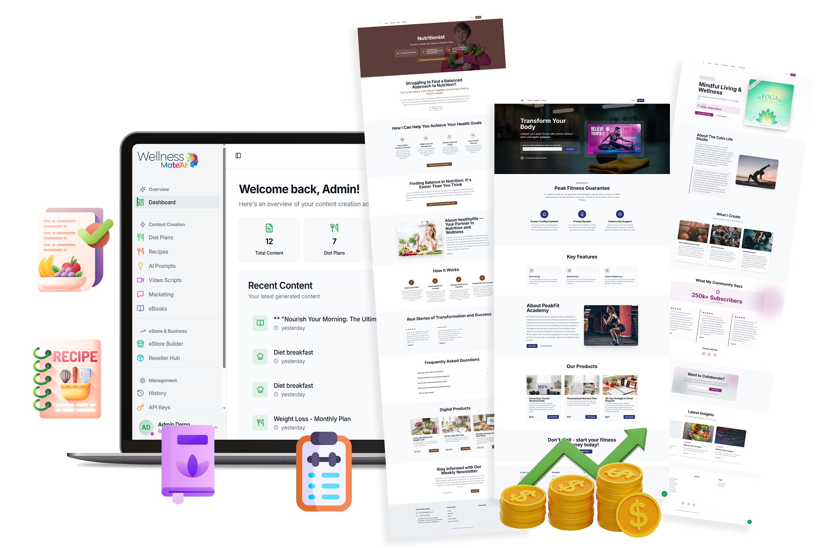 Launch your own profitable AI wellness business or offer website and content creation services to clients - keep 100% profits!