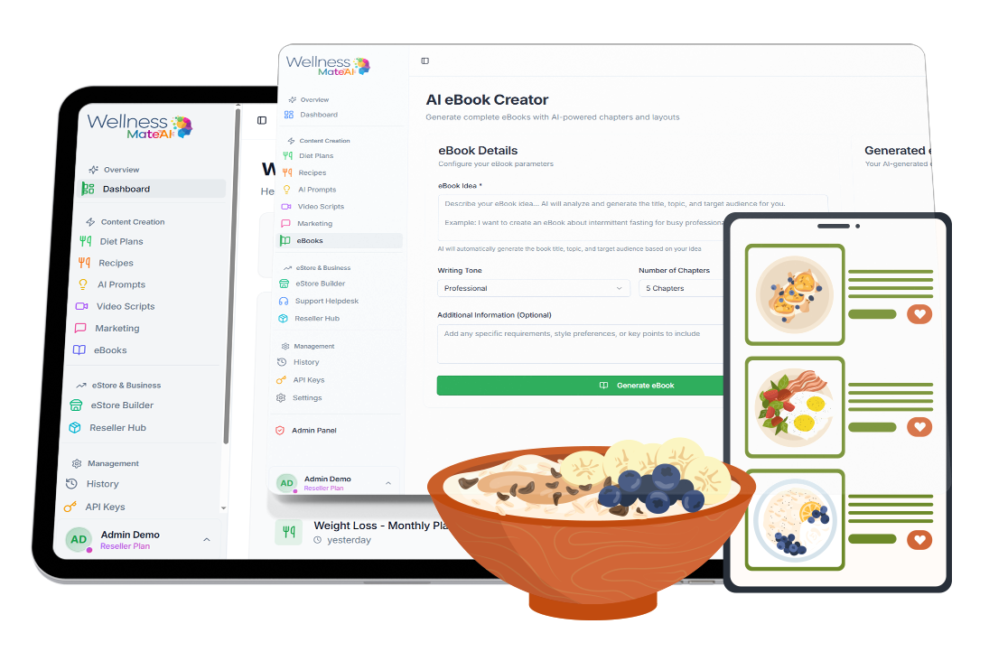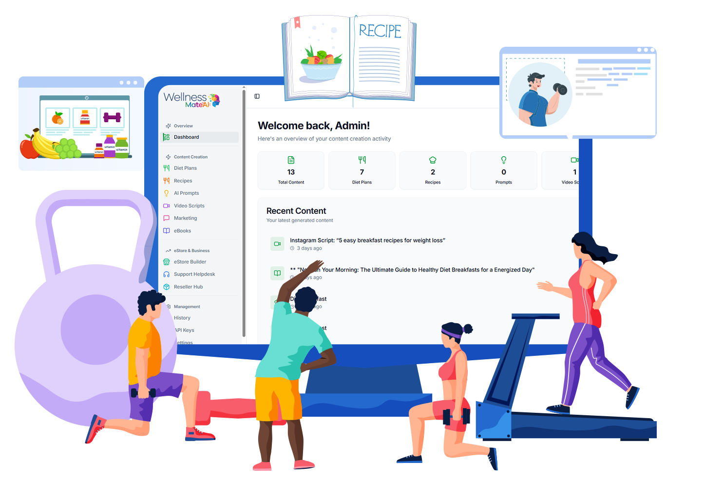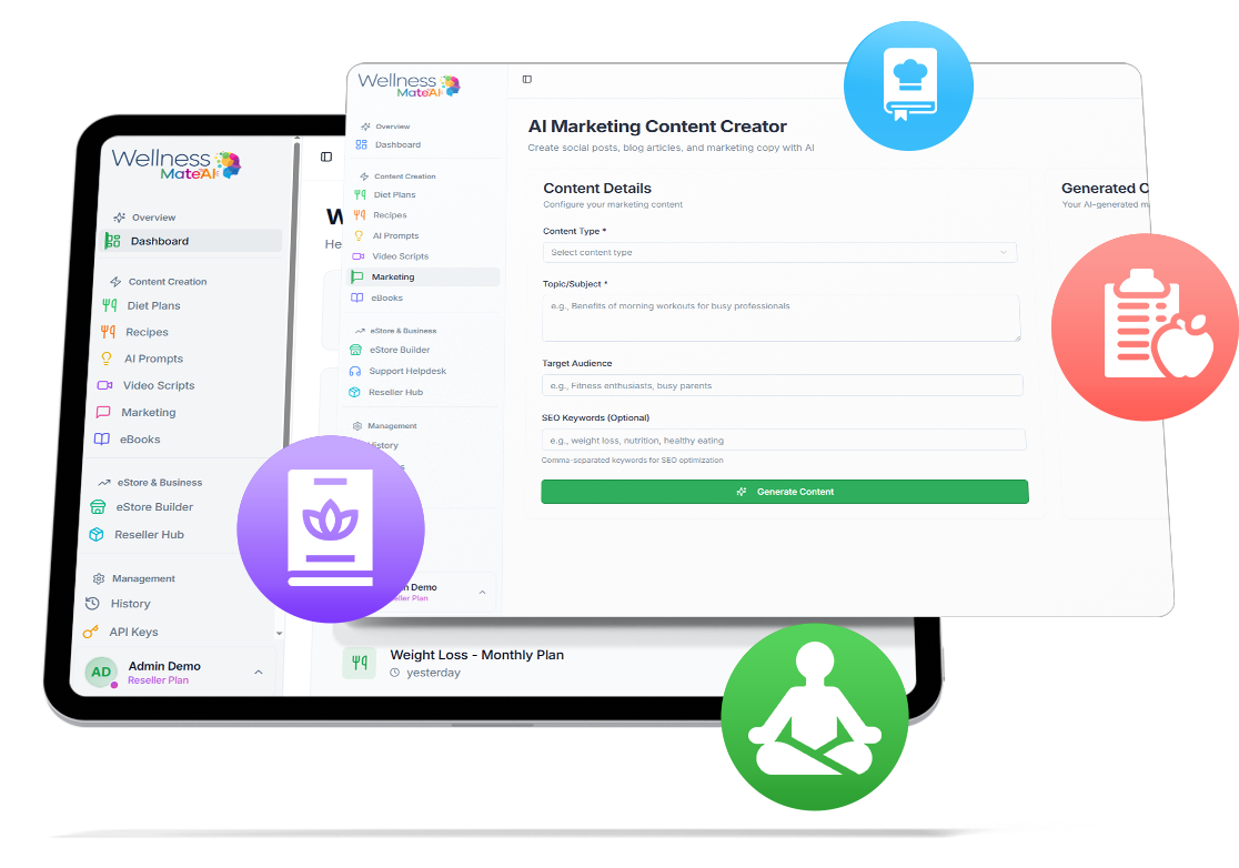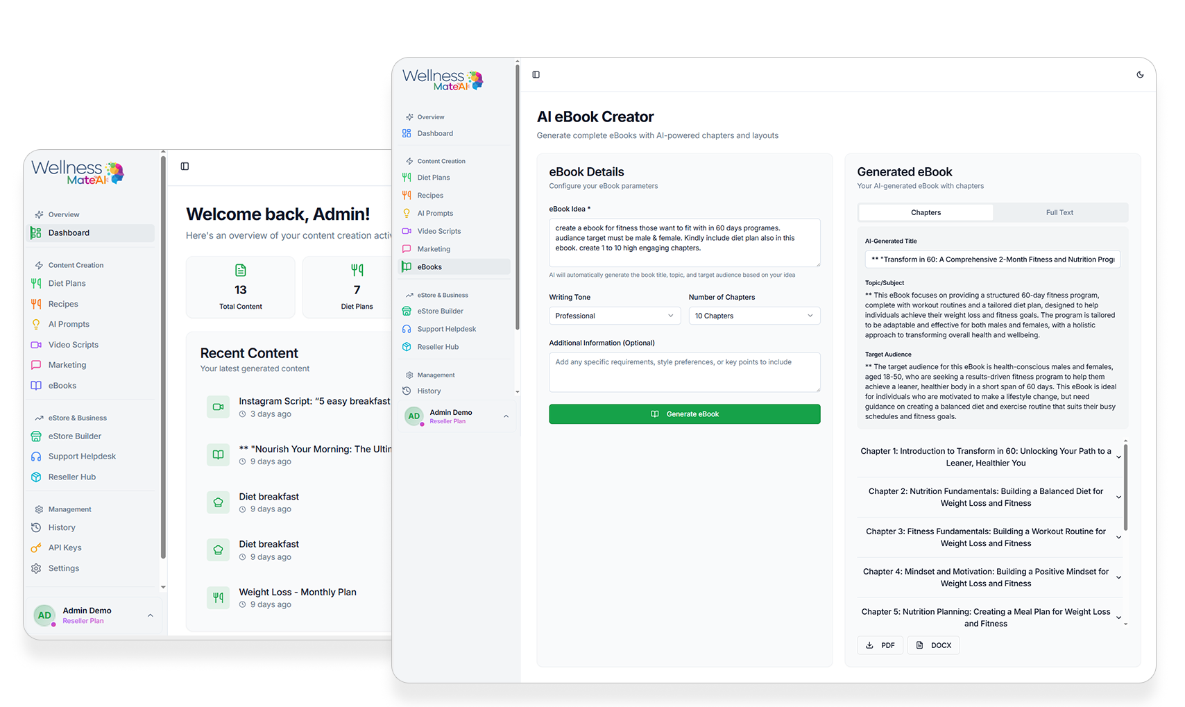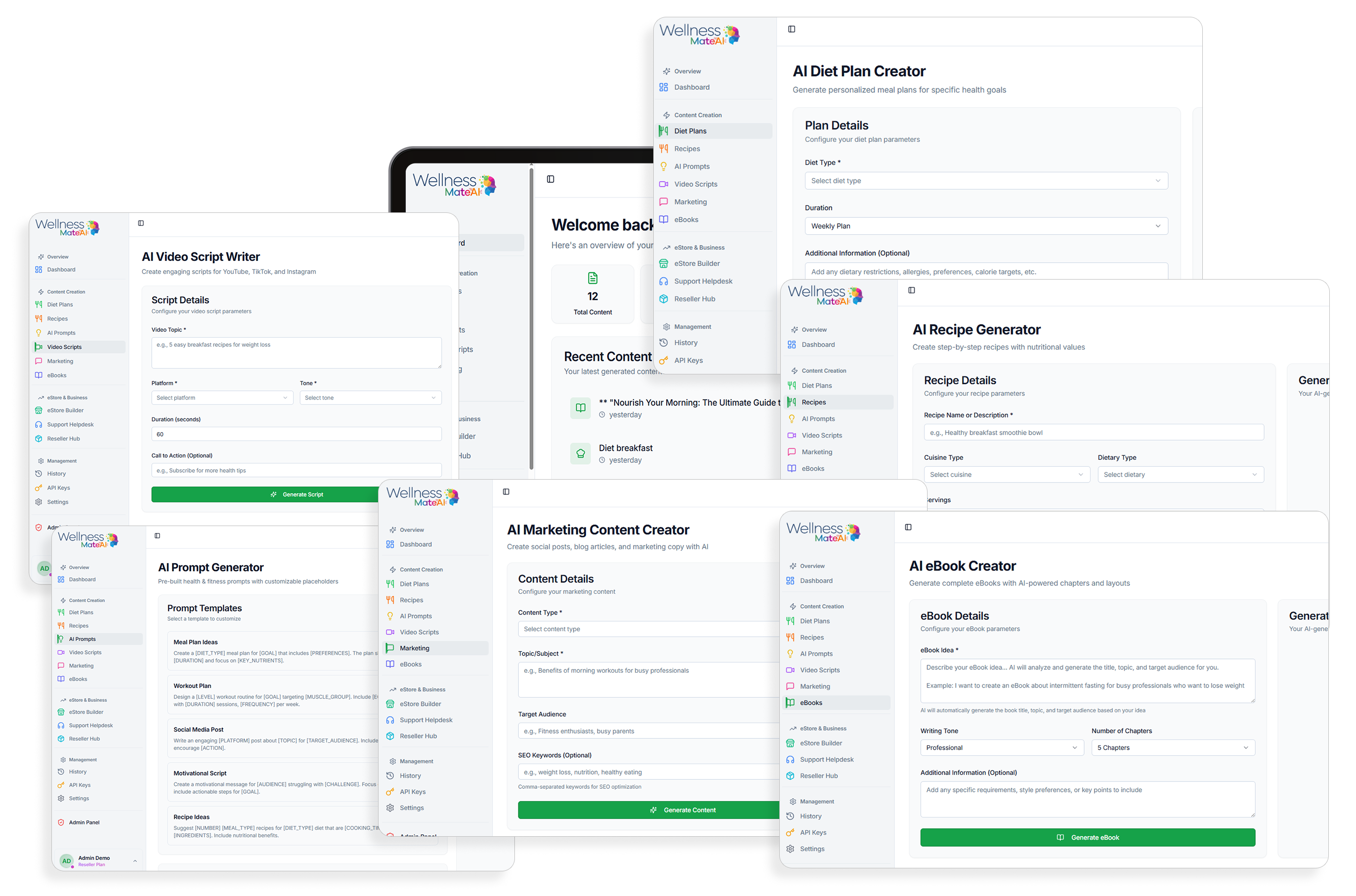 The demand for health, fitness, wellness, mindset, diet, and lifestyle content is at an all-time high-and WellnessMateAI lets you deliver premium-quality eBooks, wellness guides, detox plans, recipe books, fitness programs, and training videos in minutes.
