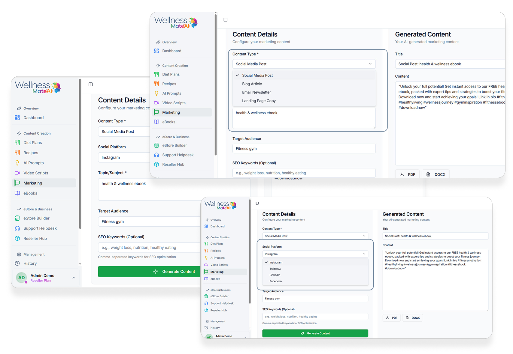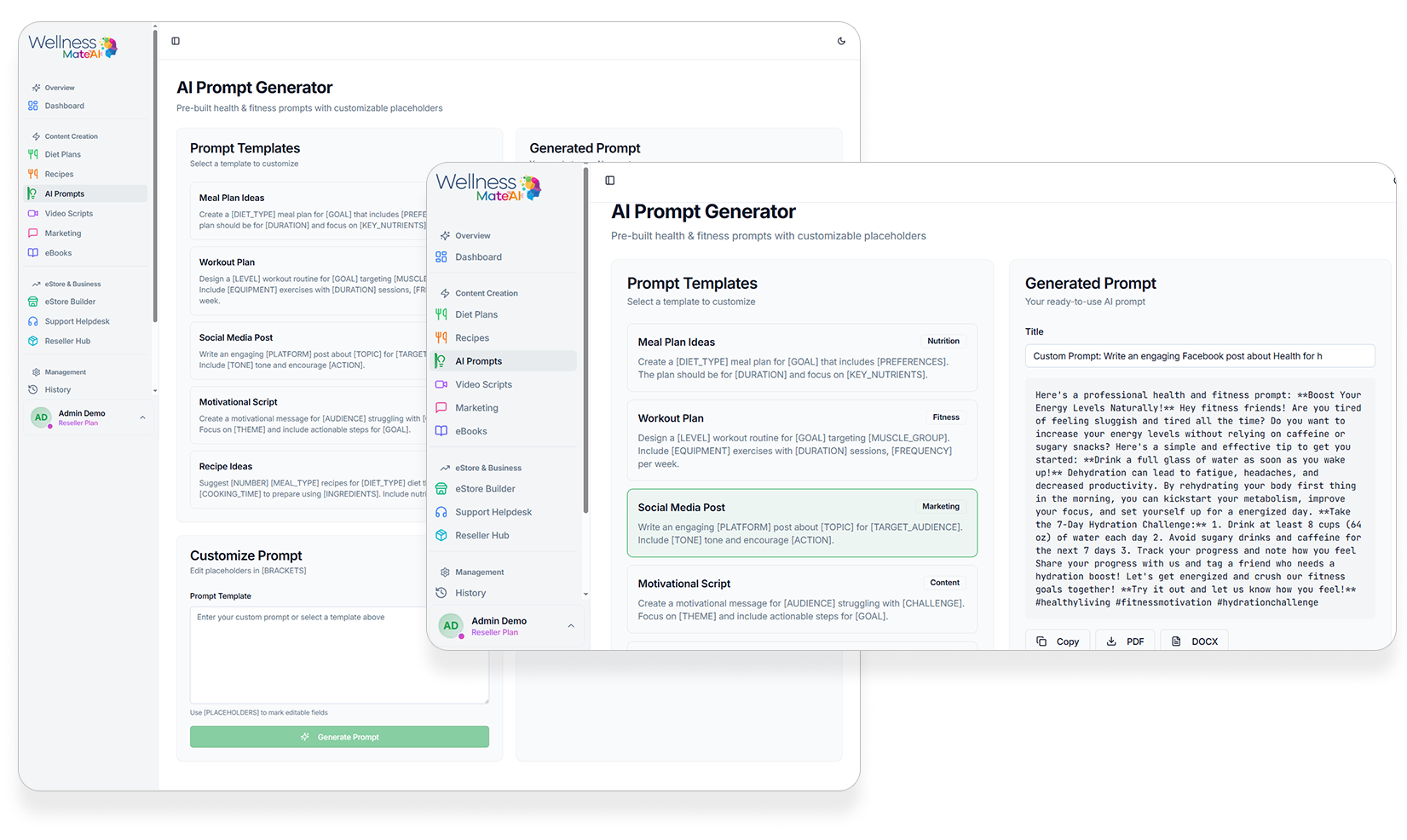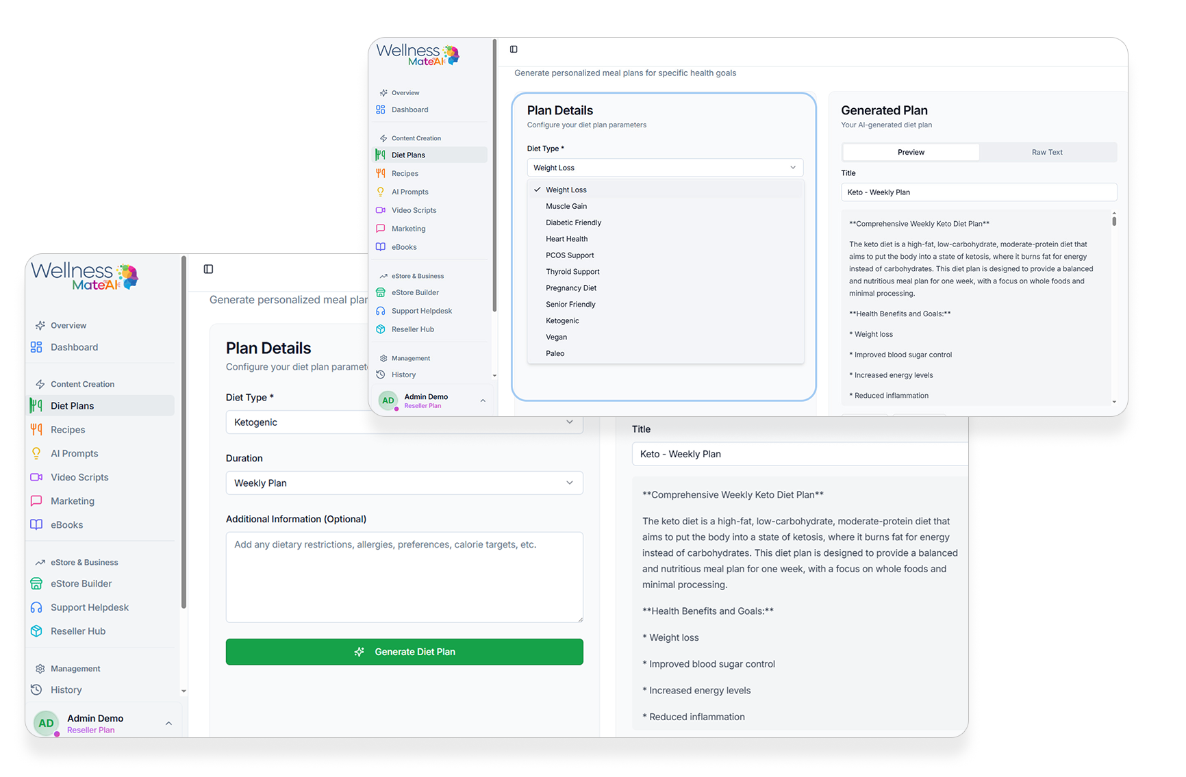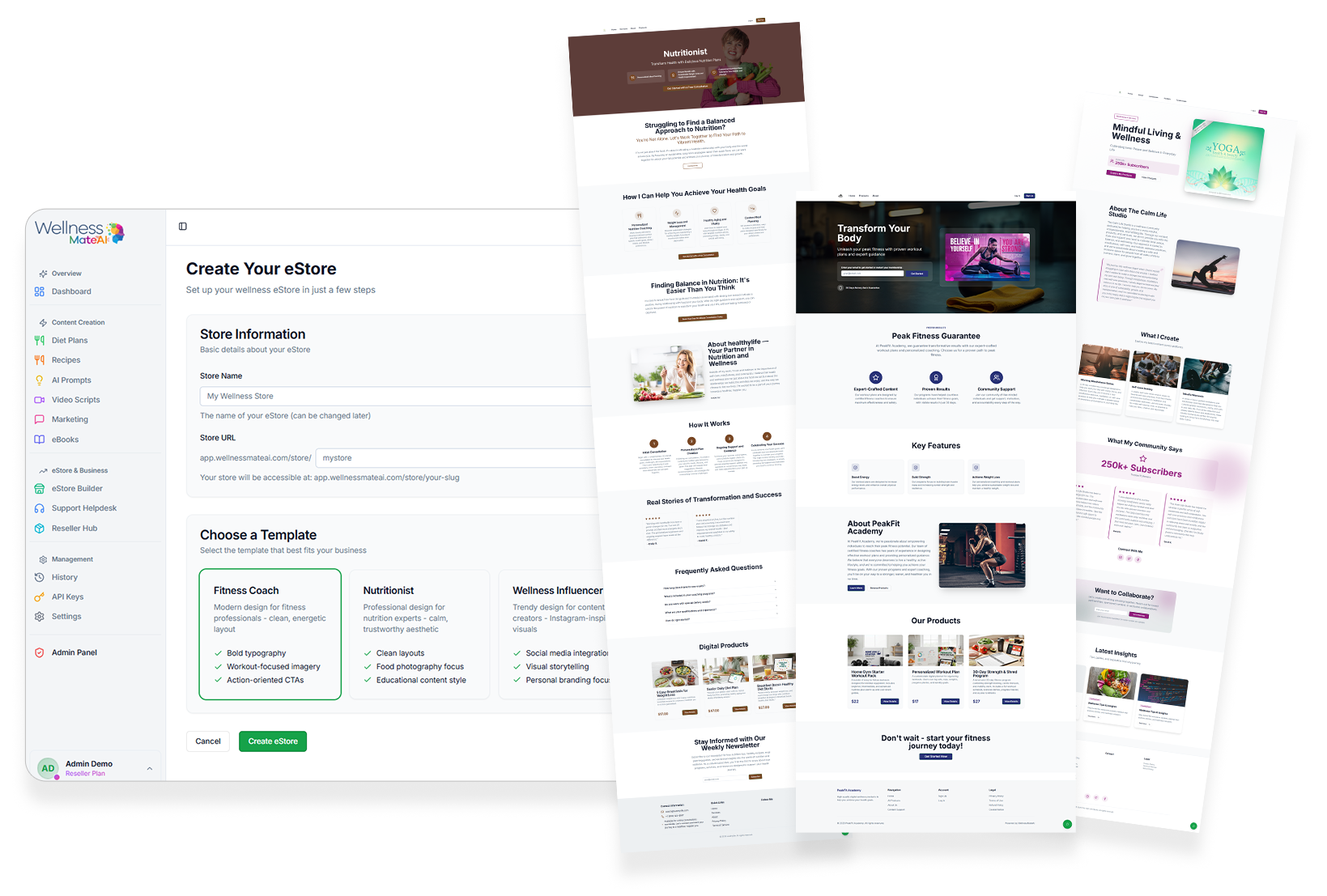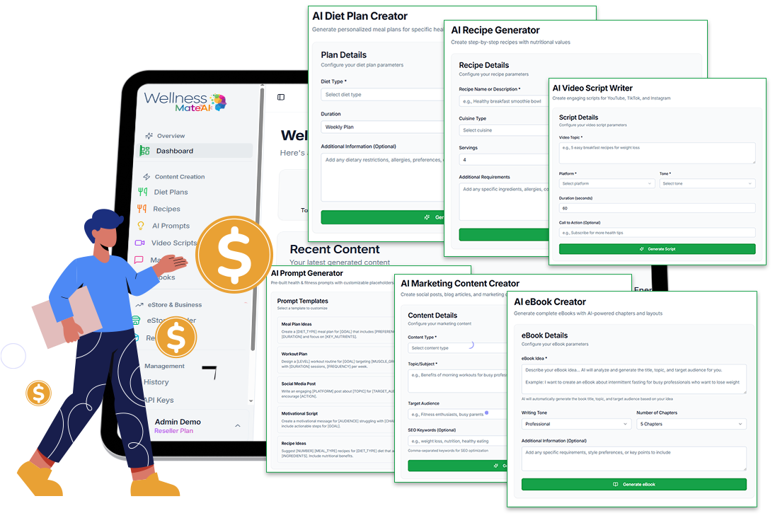 The demand for health, fitness, wellness, mindset, diet, and lifestyle content is at an all-time high-and WellnessMateAI lets you deliver premium-quality eBooks, wellness guides, detox plans, recipe books, fitness programs, and training videos in minutes.