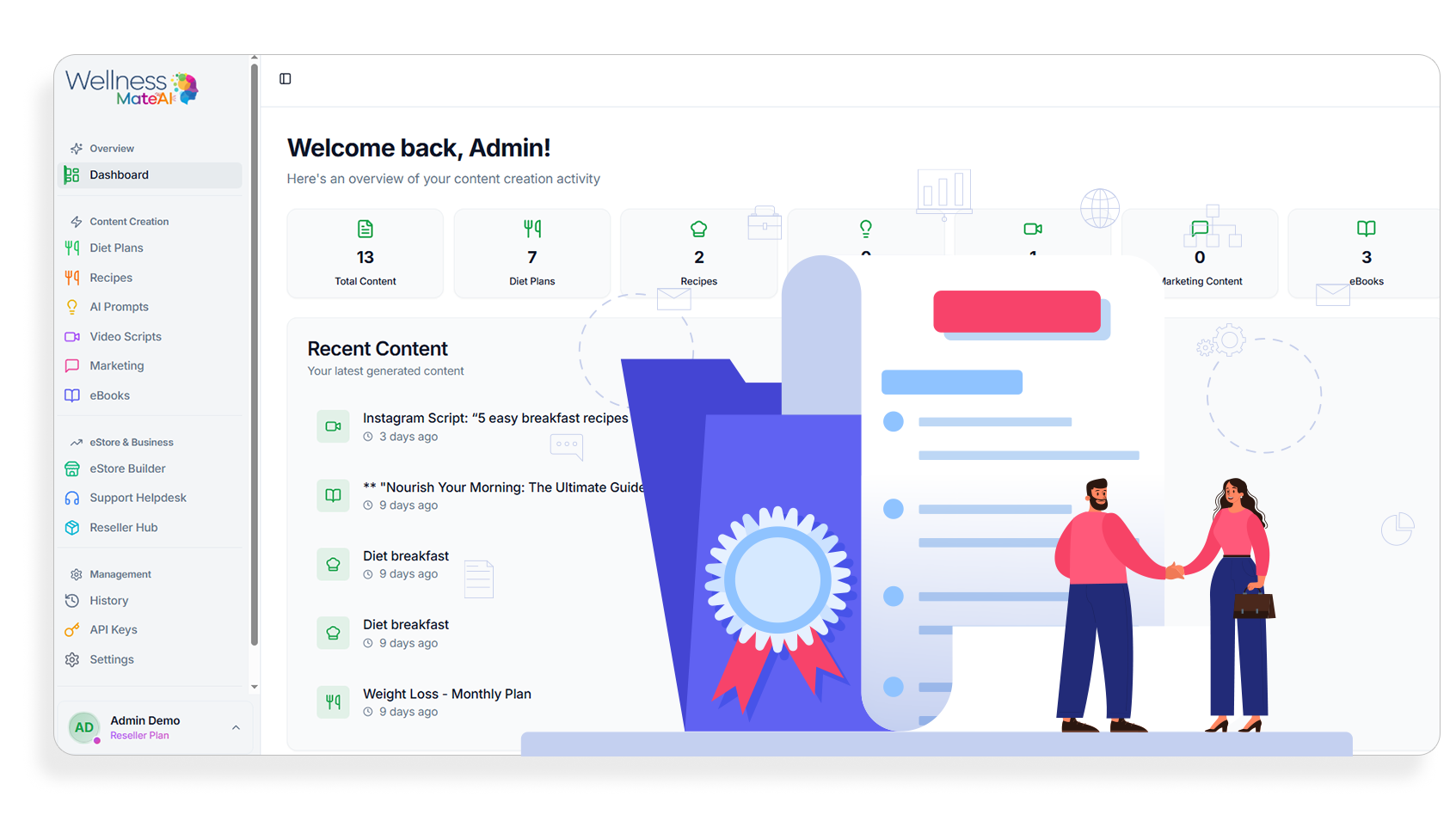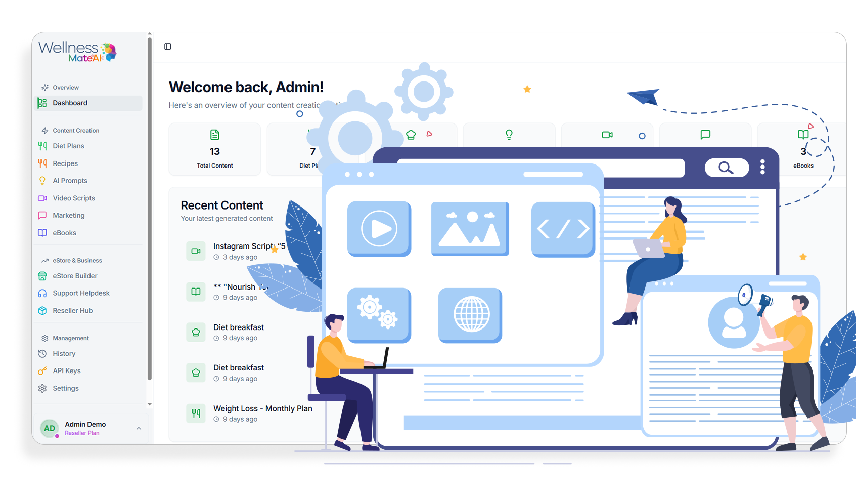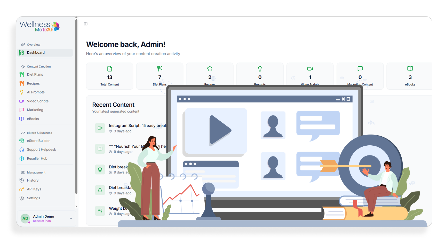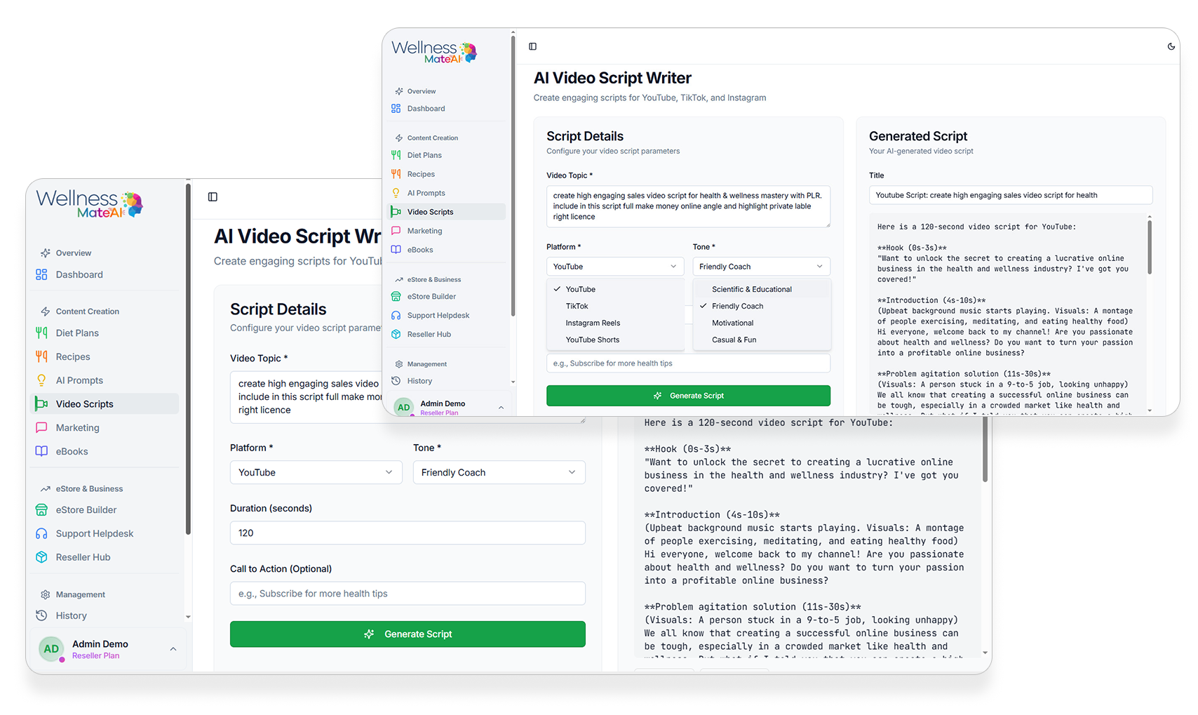 The demand for health, fitness, wellness, mindset, diet, and lifestyle content is at an all-time high-and WellnessMateAI lets you deliver premium-quality eBooks, wellness guides, detox plans, recipe books, fitness programs, and training videos in minutes.