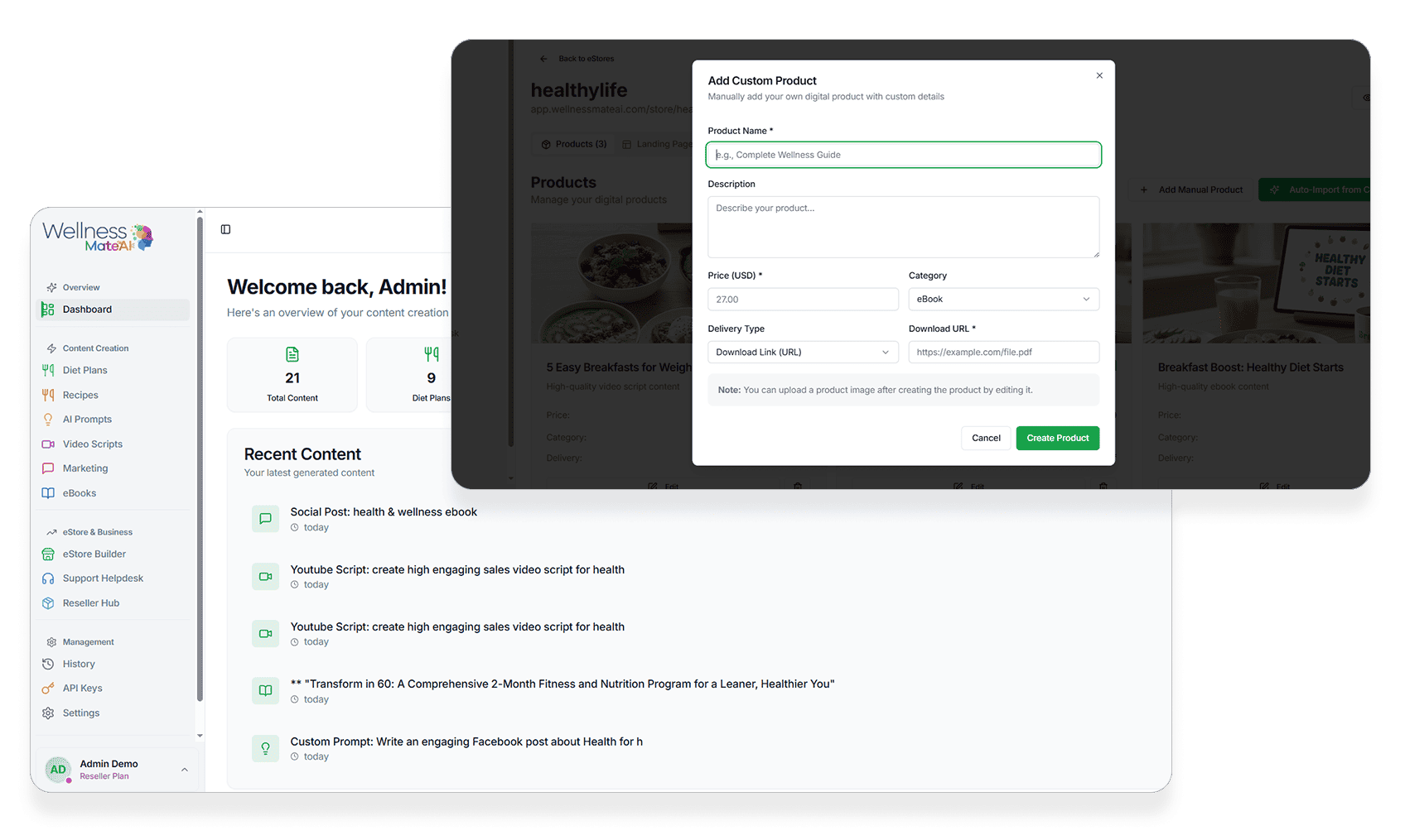 Launch as many sites as you want, customize them effortlessly, and start selling your wellness content, eBooks, plans, and programs with zero limits.